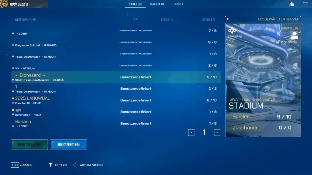 • Anticheat: Ist im Peer-to-Peer-Modus deaktiviert.