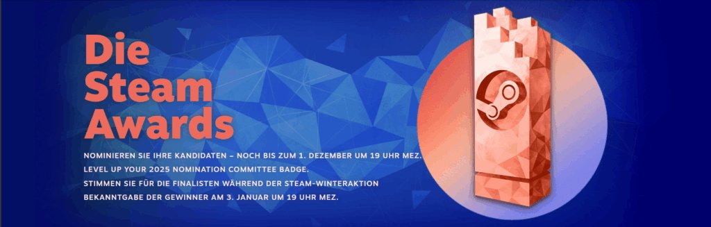 Während des Steam-Winter-Sales kann man dann für sie voten. Die Bekanntgabe des finalen Ergebnisses erfolgt am 17. Jänner 2026.